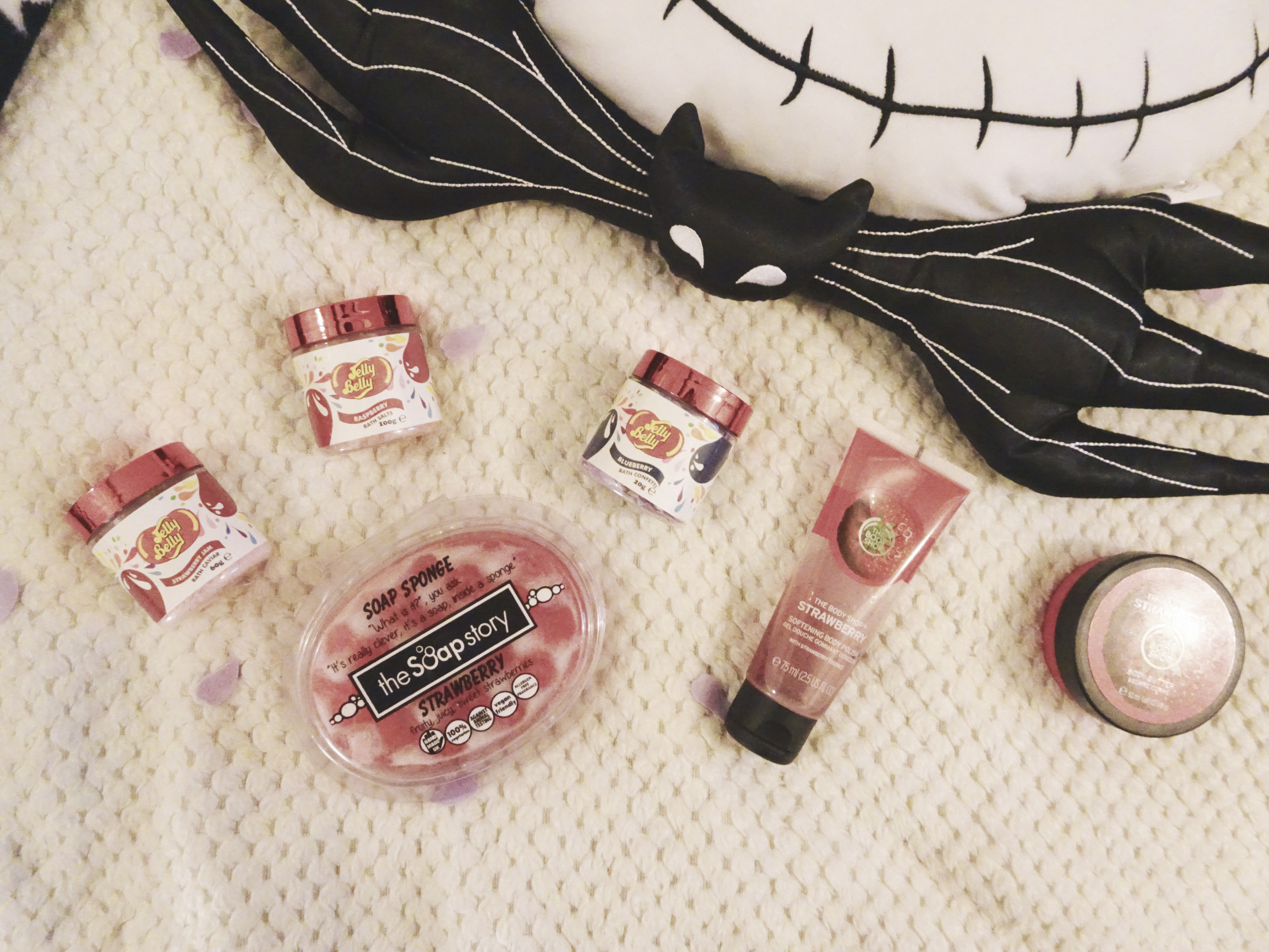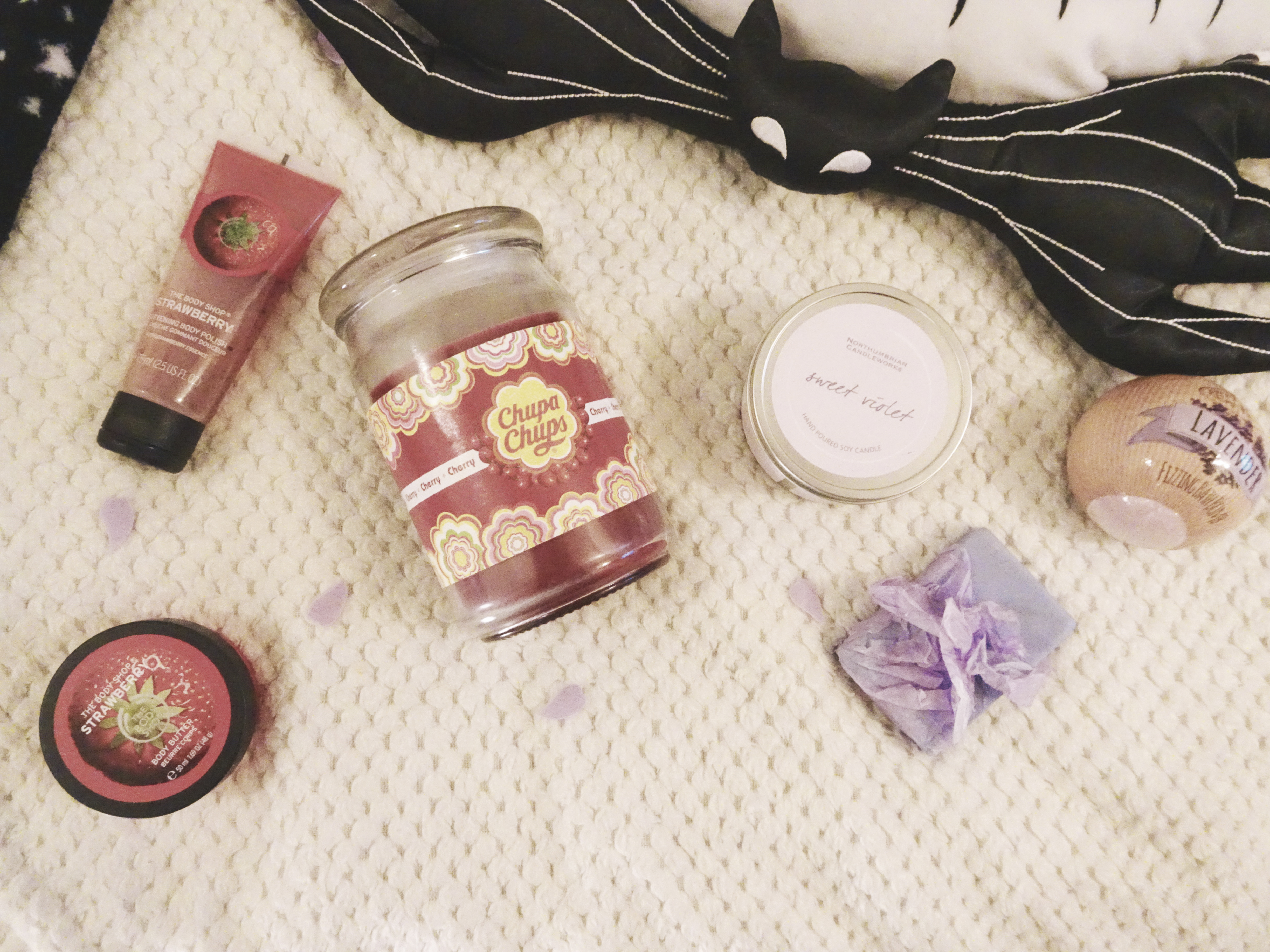 I know this might seem elaborate, but my routine came about organically. I found a Bodyshop strawberry bundle on Depop at a price I felt like I could justify, and I’d bought lavender toner water a year earlier. At Christmas, my parents bought me some strawberry and lavender bath products, and a very kind friend bought me a lavender candle. As for the strawberry candle, I found it in a B&M – a far cry from the glamorous stores that I imagine most bloggers shop at.